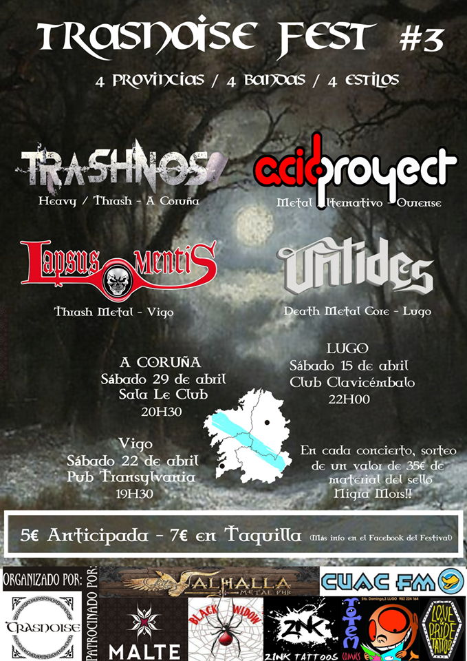 El colectivo Trasnoise tiene un blog dedicado a la escena metal gallega con el objetivo de dar más visibilidad a las bandas de Galicia (listado de bandas, agenda de conciertos, noticias, management....) y para celebrar su tercer aniversario han decidido montar este festival itinerante en Galicia organizando 3 conciertos con las mismas bandas: