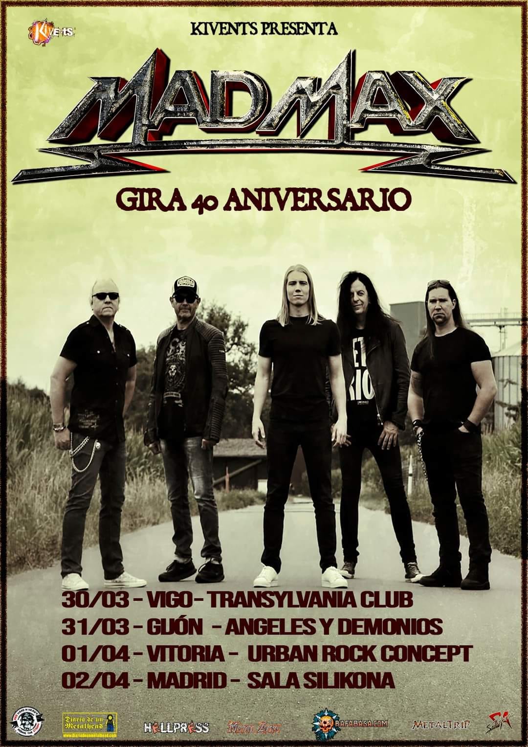 La banda procedente de Münster (Alemania) Mad Max cumple 40 años como banda y regresa a España en una gira de cuatro conciertos donde interpretarán sus clásicos de siempre y conoceremos de primera mano “Wings Of Time”, su nuevo disco.