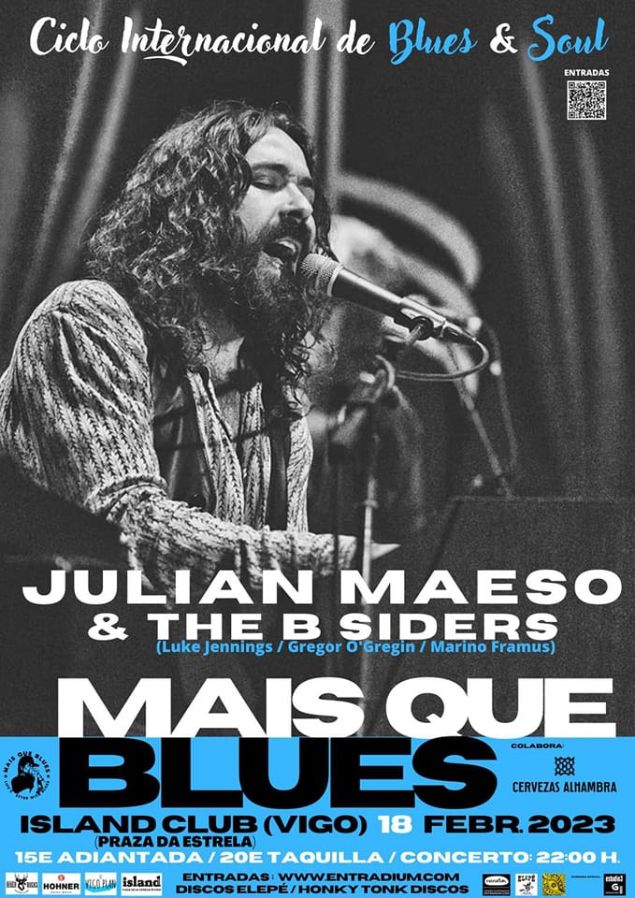 Julián Maeso promete dar el 18 de febrero un concierto inolvidable en el Island Club de Vigo, dentro del ciclo "Mais que Blues- Cervezas Alhambra" que además forma parte de “Momentos Alhambra”, donde se engloban todas aquellas experiencias singulares que apuestan por el descubrimiento de creaciones auténticas hechas para disfrutar sin prisa y con los cinco sentidos.