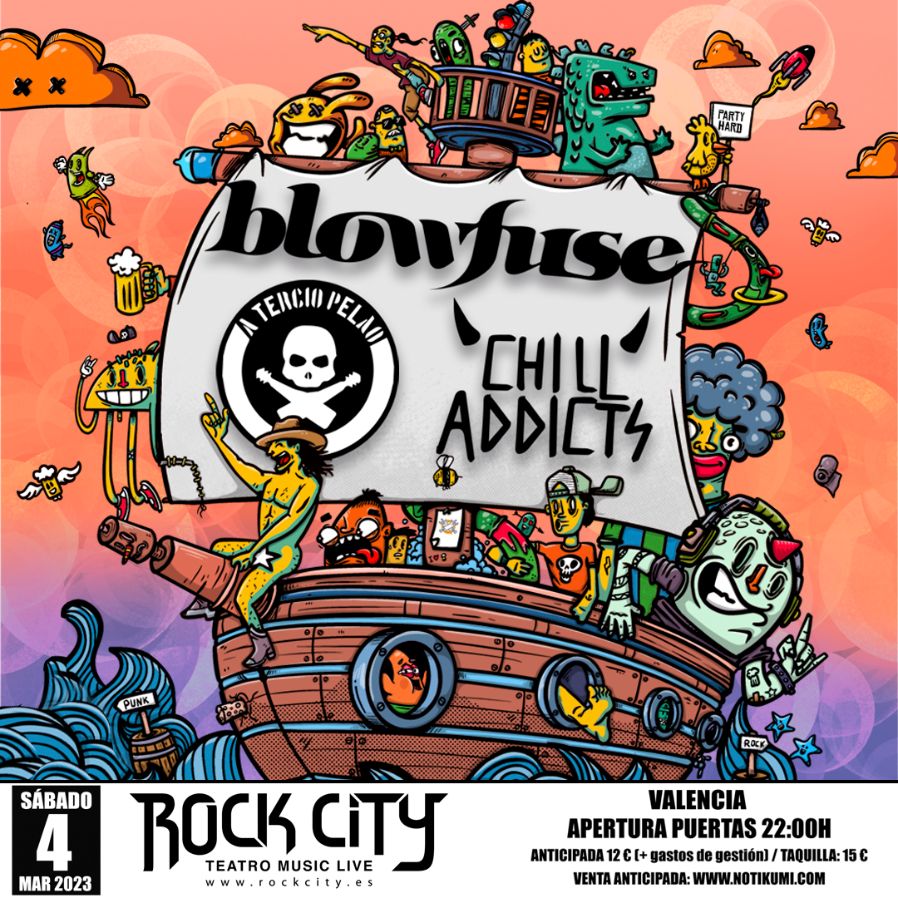 La banda barcelonesa Blowfuse, junto a los valencianos Chill Addicts y A Tercio Pelao, se compromete a volver a agitar las tierras valencianas, meses después de completar la gira de aniversario de la legendaria banda de punk rock californiano Bad Religion.