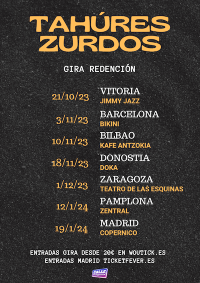 Tahúres Zurdos, además, anuncian una gira que les llevará a recorrer toda la península para presentar este nuevo material y dejar claro que están de vuelta con las mismas o más ganas que siempre y dispuestos a demostrar por qué son considerados uno de los grupos más emblemáticos del rock en castellano.