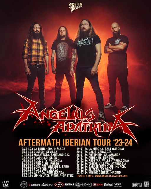 Angelus Apatrida, los reyes del thrash metal nacional, comienza esta semana la gira presentación de su nuevo, y octavo, álbum Aftermath. El tour llevará a los de Albacete por al menos 17 ubicaciones de la geografía española y portuguesa empezando en Málaga y finalizando en nada menos que el Wizink Center de Madrid.