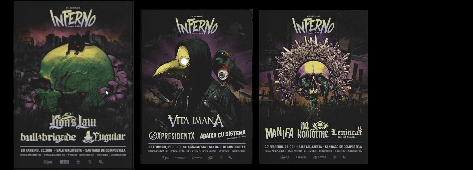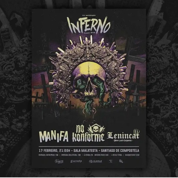 Además de en venta online, las entradas están disponibles en venta física en el propio Inferno Rock Bar y en A Reixa Tenda (Matrioska) de Santiago.