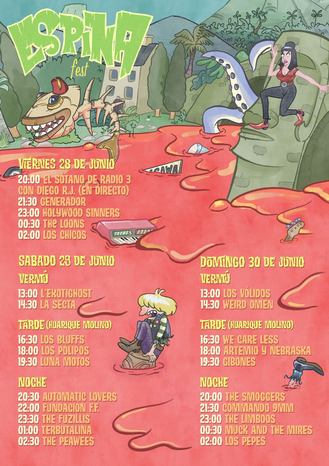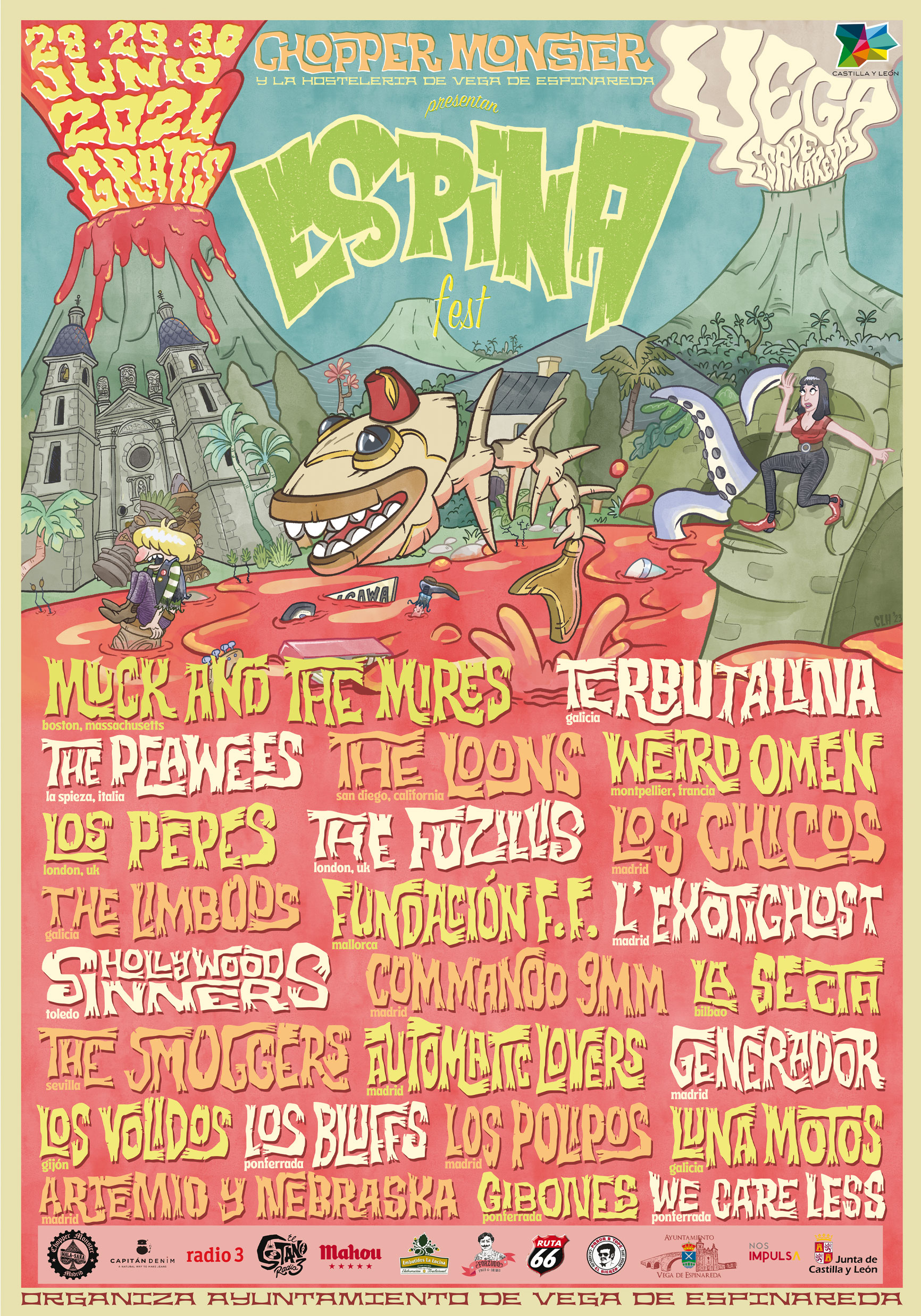 Más de una veintena de bandas nacionales e internacionales que no hacen más que consolidar un festival que, en un pequeño pueblo, el pasado año movió a más de 4.000 personas: por el lado internacional destacamos a Muck and the Mires (Boston), The Peawees (Italia), The Loons (California) y The Fuzillis (UK); y de cosecha ibérica Los Vólidos, The Smoggers, Luna Motos, Artemio y Nebraska, Generador, Los Chicos...
