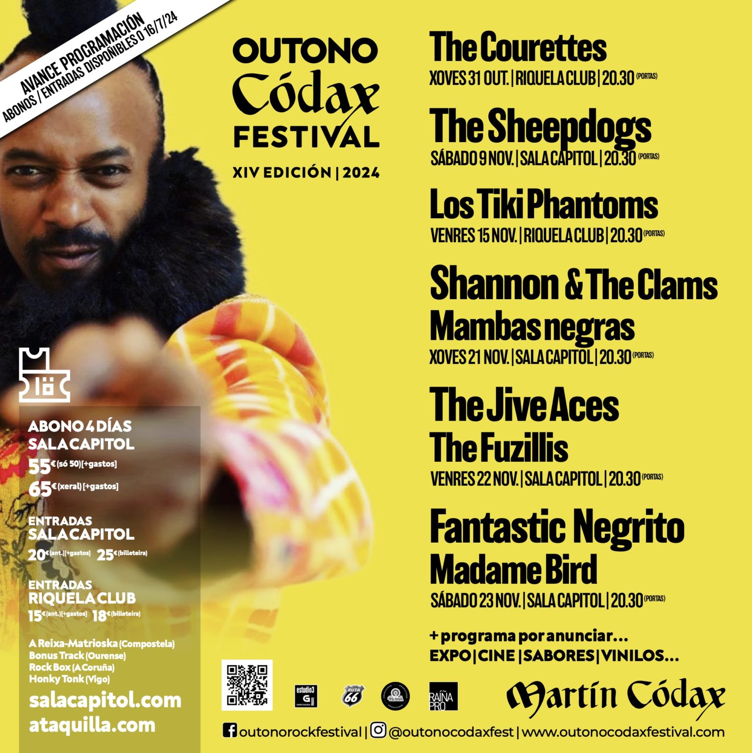 Del día 31 de octubre al 23 de noviembre se celebrará en Santiago de Compostela la decimocuarta edición del festival «Outono Códax» que, como cada año, trae los mejores sonidos del blues, soul, jazz o R&B... con artistas de renombre internacional y nacional.
