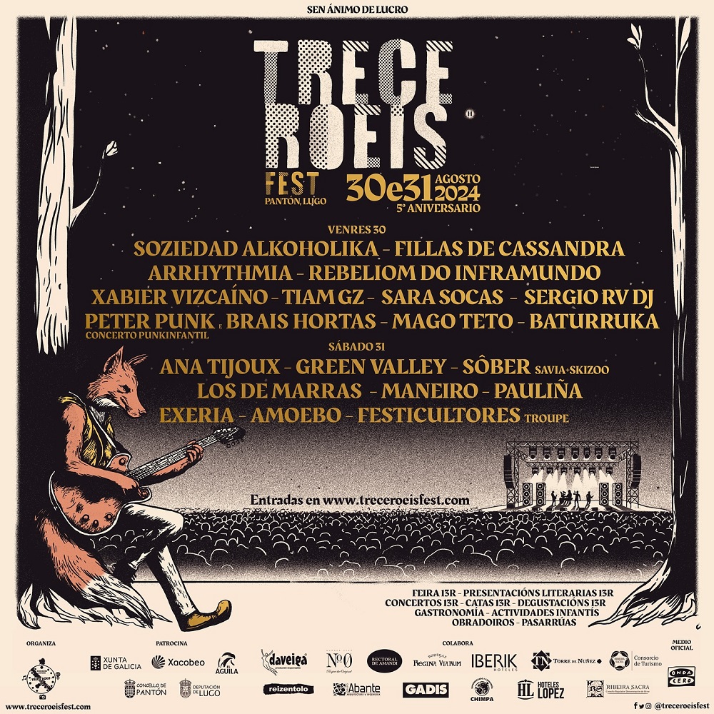 El Trece Roeis Fest 2023 se celebrará los días 30 y 31 de agosto como en otras ocasiones en el Campo Municipal de Ferreira de Pantón (Lugo).