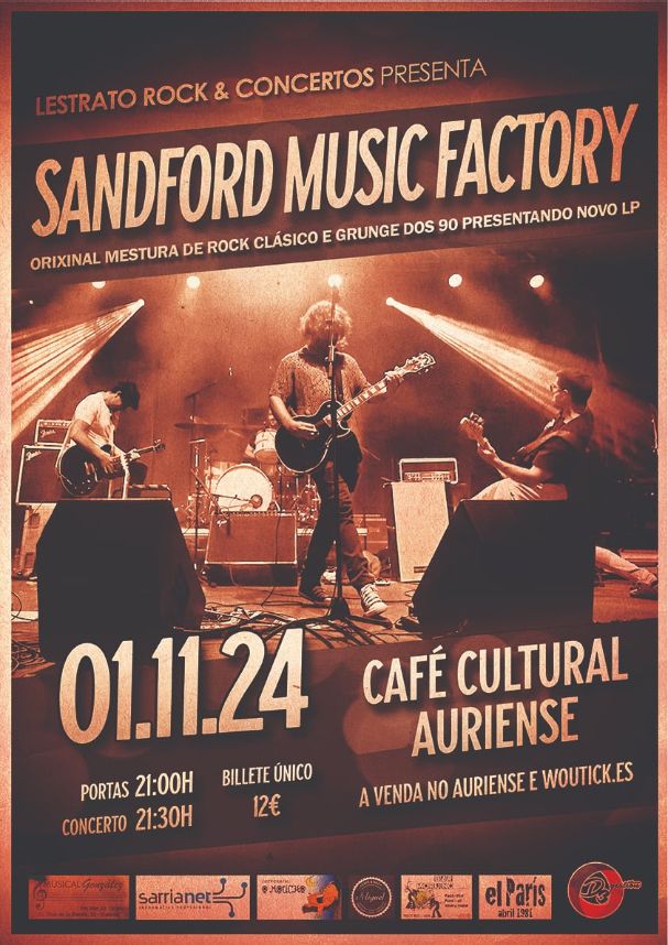 Sandford Music Factory y "Altospeaker" llegan a Ourense este próximo 01 de noviembre, en concreto al Café Cultural Auriense de la mano de Lestrato Rock. El concierto comenzará a las 21:00h y la entrada tiene un precio de 12€. A la venta en Café Auriense y woutick.es.