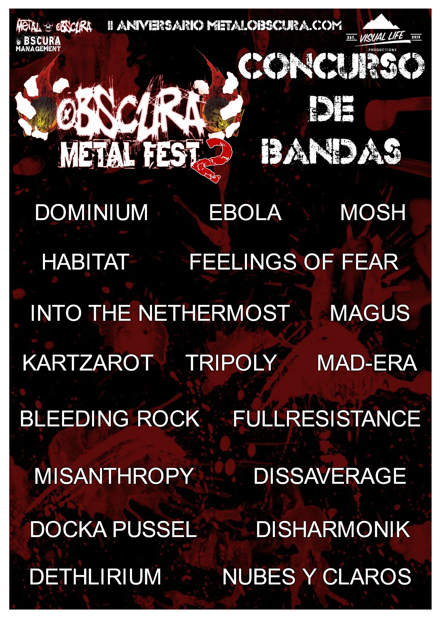 Dominium, Ebola dp, Mosh, Habitat Band, Feelings Of Fear, Into the Nethermost, Magus, Kartzarot, Trípoly, Trípoly, Mad-Era Band, Bleeding Rock, Fullresistance, Misanthropy, Dissaverage, Docka pussel, Disharmonik, dISHARMONY, Dethlirium, Nubes y Claros.