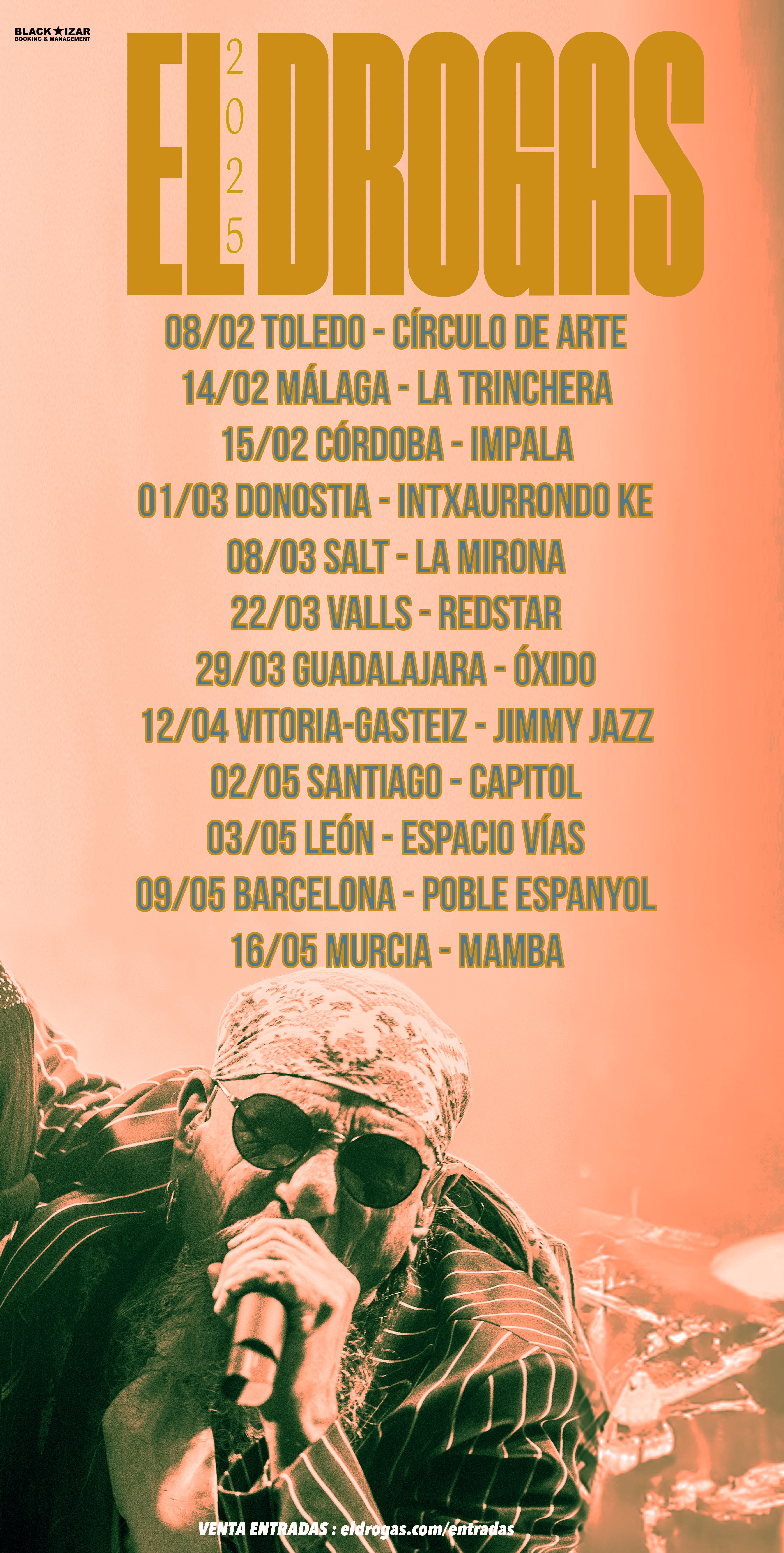 El Drogas, "el poeta de la voz rasgada", inicia gira en este año 2025, con un total de 12 conciertos, programados hasta la fecha, que recorrerán parte de la geografía española. Enrique Villarreal, ese entrañable e incombustible oriundo de Pamplona, vuelve a Galicia, un año más, para celebrar una fiesta sobre el escenario interpretando un repertorio que abarcará desde las nuevas canciones hasta, por supuesto, clásicos básicos de toda la enorme carrera del artista.