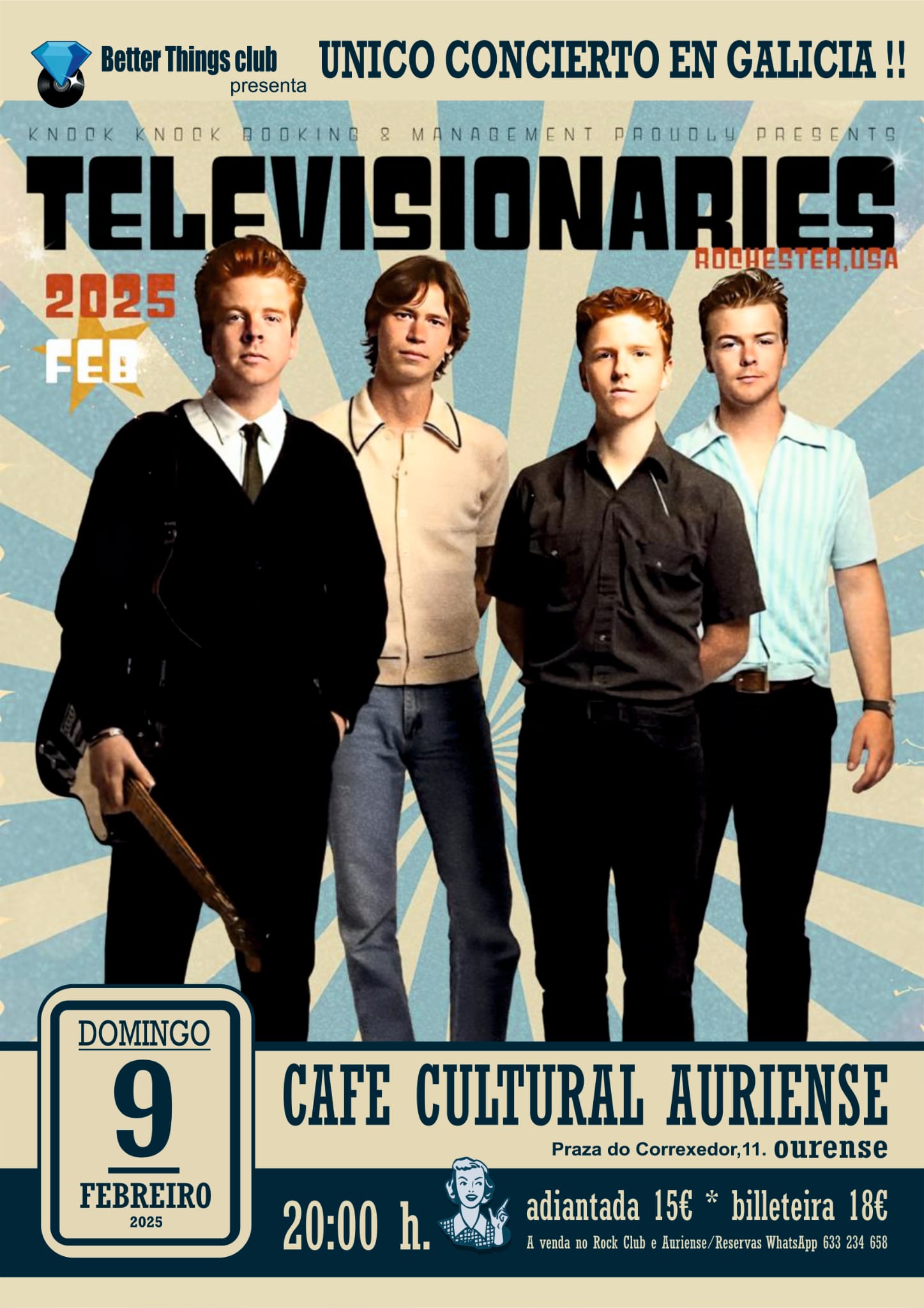 La familia Better Things Club no podría haber programado un mejor comienzo de año que el que se nos avecina el próximo 09 de febrero en el Café Auriense de Ourense. Desde Rochester (New York) nos visitará el cuarteto Televisionaries.