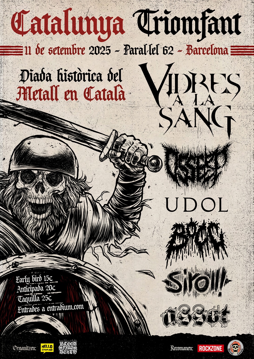 Vidres A La Sang capitanearán el Catalunya Triomfant del próximo 11 de septiembre en Barcelona, el festival que reunirá por primera vez la flor y nata del metal extremo cantado en català. Las entradas early bird volaron en muy pocas horas, y la venta de anticipadas continúa a un gran ritmo a través de Entradium: https://entradium.com