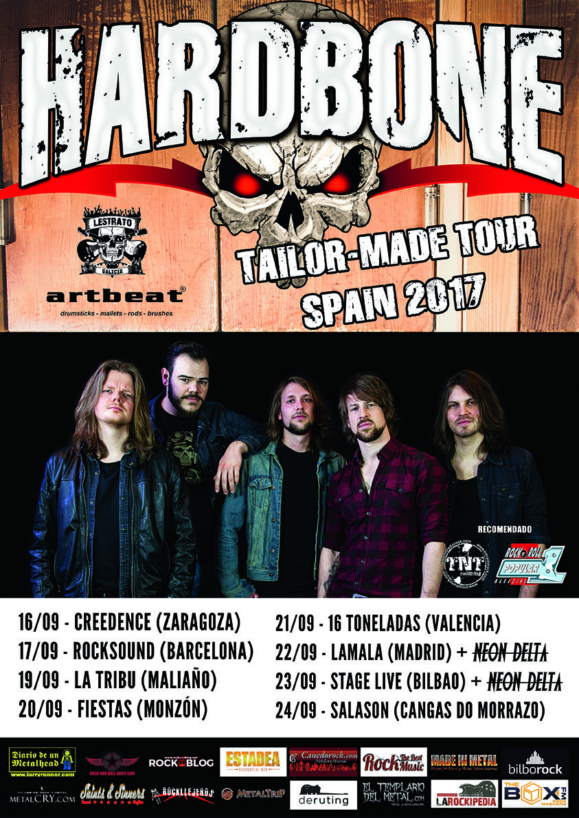 Se han producido cambios de última hora en la gira que se aproxima de los alemanes HARDBONE por nuestro país. Por un lado se traslada el concierto de Zaragoza de la sala Utopía a la sala Creedence. Además, el concierto que iba a tener lugar en Tarazona de la Mancha se traslada a Valencia, siendo la sala 16 Toneladas el lugar elegido donde los de Hamburgo descargarán su potente y enérgico hard rock.