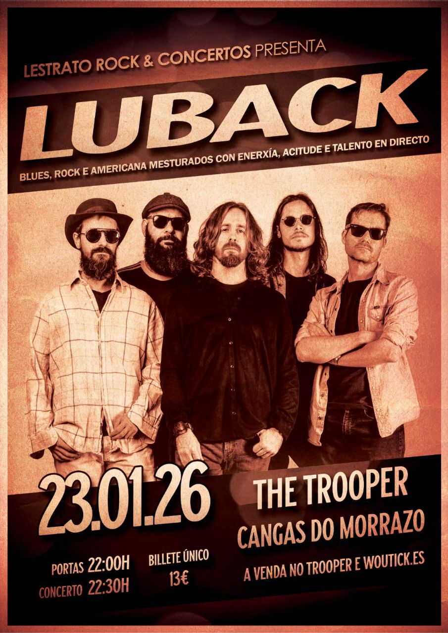 Con su “rock clásico del s. XXI”, Luback lleva más de 10 años destilando música de raíces con estilo propio. Rock, blues, folk y soul se unen en un sonido con fuerza e identidad propias, actual e impregnado de americana. Sus influencias van desde Eric Clapton, Led Zeppelin o The Black Crowes hasta Chris Stapleton, Nathaniel Rateliff o Larkin Poe.