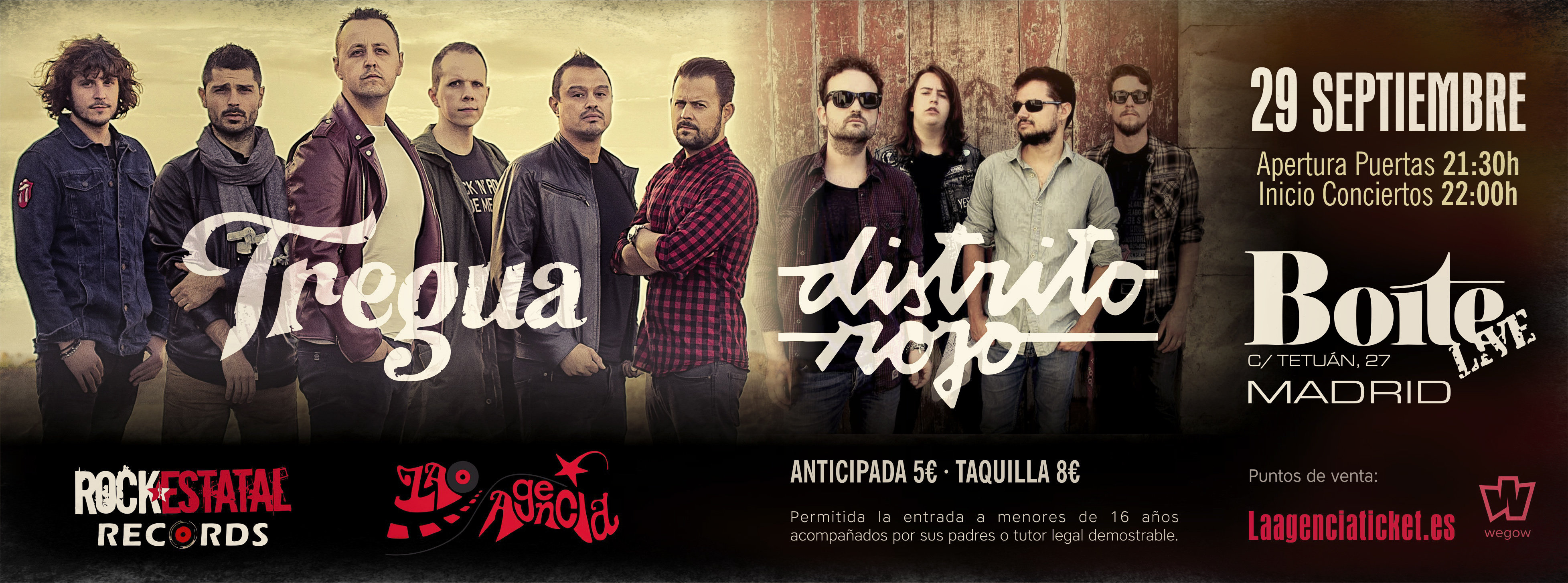 Tras la exitosa gira de Tregua con su nuevo trabajo discográfico , y después de haber llenado el Hard Rock Café de Madrid en Marzo , la banda regresa a la capital a descargar de nuevo su potente directo, tras un verano repleto de conciertos , esta vez lo hacen acompañados de Distrito Rojo , el encuentro tendrá lugar en la mítica Sala Boite de Madrid el próximo 29 de Septiembre.
