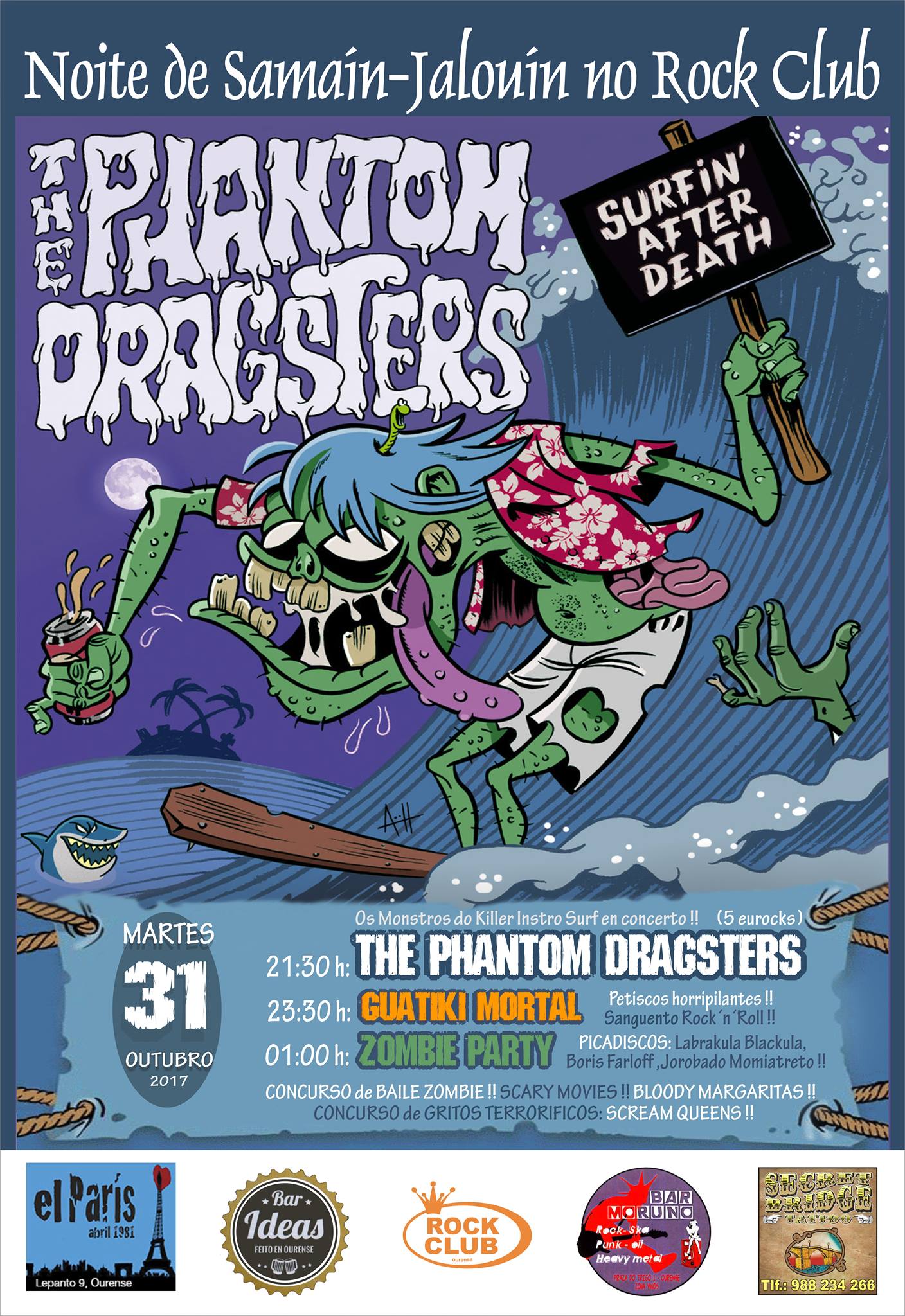 Los encargados de la banda sonora a primera hora serán los ourensanos The Phantom Dragsters, monstros do killer instro surf in action!! En el escenario del Rockclub a partir de las 21.30h con una entrada de 5€.