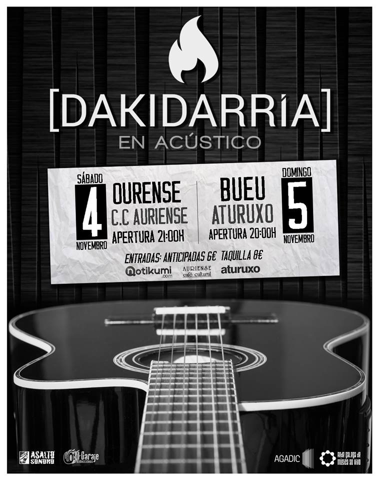 En la ciudad de As Burgas estarán el sábado 04 de noviembre, actuarán en el Café Cultural Auriense a partir de las 21:00h. En Bueu estarán el domingo 05 a partir de las 20:00h. en Aturuxo Bar.