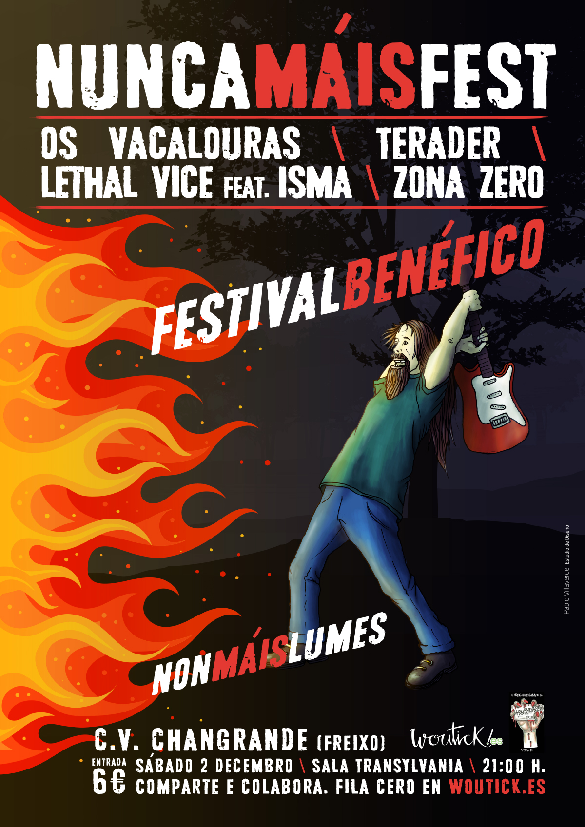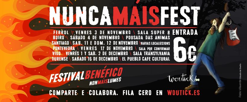 Nunca Máis Fest es una iniciativa espontánea que surge de diversos músicos de la ciudad de Vigo de querer hacer lo que mejor saben para ayudar a todas los damnificados por los incendios que asolaron los montes de Galicia el pasado mes de octubre y que han dejado desolación y muertes a su paso y a la que se han sumado bandas de toda Galicia.