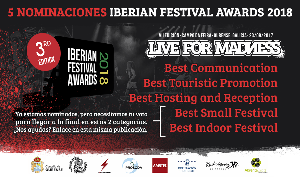 El festival ourensano Live for Madness Metal Fest ha sido nominado por tercer año consecutivo en los Iberian Festival Awards, certamen que premia a los mejores festivales de todos los estilos de España y Portugal.