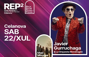 El ciclo Rock entre Pedra e Poesía presenta el proximo 22 de julio a la Javier Gurruchaga y la Orquesta Mondragón en el claustro del Monasterio de S. Salvador en Celanova (Ourense). Abrirán para ellos los ourensanos Mad Mission.