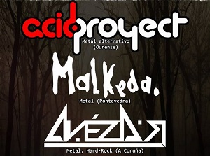 La bandas gallegas Acidproyect (Metal Alternativo, Ourense), Malkeda (Metal, Pontevedra) e Avézar (Metal-Hard Rock, A Coruña) estarán descargado todo su fuerza este próximo sábado 09 de junio en la Sala Super 8 de Ferrol.