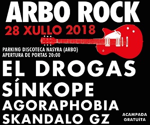 La quinta edición del Arbo Rock se celebrará el próximo 28 de julio en la localidad pontevedresa de Arbo y contará con El Drogas, Sinkope, Agoraphobia y Skandalo GZ para poner la banda sonora a la noche más rockera del año en la capital de la lamprea.