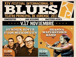 El Festival Internacional de Blues Teatro Principal de Ourense tendrá lugar los dias 17 y 18 de noviembre, y al igual que en los últimos años, además de los conciertos estelares en el Teatro Principal, con Hendrik Röver & Los Míticos GTs, Shanna Waterstown Band y Red House, el guitarrista Richard Ray Farrell impartirá masterclasses de "guitarra blues" por las tardes y Hendrik Röver & Los Míticos GTs serán los encargados de conducir las jam sessions las dos noches del festival a partir de medianoche.