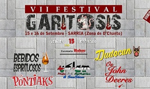 La séptima edición del Festival Garitosis este año amplia su cartel a dos días en el que actuarán un total de 13 bandas. Aphonnic, The Royal Flash, Os John Deeres, Brinkadelia Troupe, Los Pontiaks o Muddy Doll son algunas de las bandas que podremos disfrutar en Sarria (Lugo) los próximos 15 y 16 de septiembre.