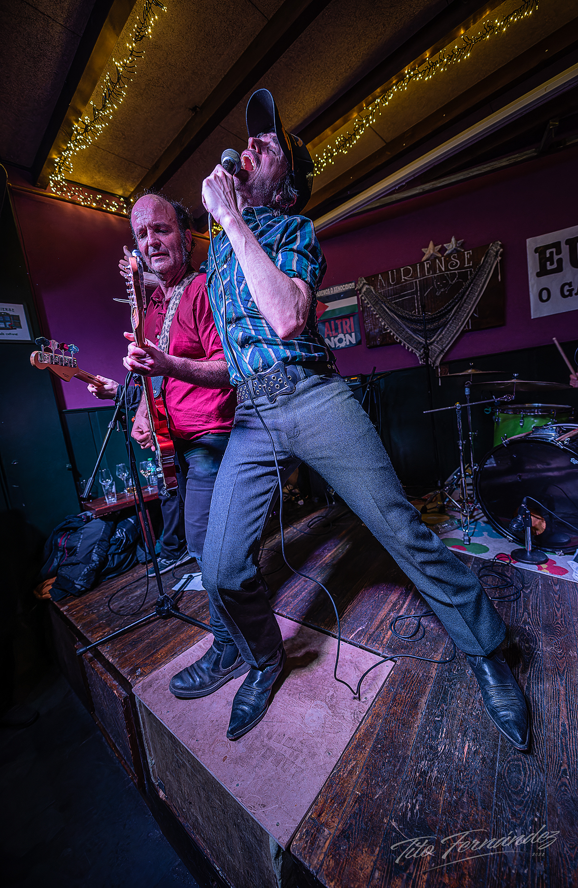 La banda más salvajemente divertida del país lleva mal el permanecer sobre el escenario durante todo el show. Como cabía esperar, el escenario del Auriense se les quedó pequeño. Pero hubieran dado igual las dimensiones. El del mísmisimo Madison Square Garden no daría abarcado el brutal despliegue escénico de Rafa y los gemelos.. Las idas y venidas a la barra, las interacciones con el público, las coñas de un frontman irrepetible, los bailes… hacen del bolo una excéntrica liturgia, máxime cuando el noventa por cien de la sala sabe a que ha venido y disfruta a tope de la comunión total con los músicos. Enérgicos riffs, gamberras coreografías, una poderosa base rítmica, sudor, sonrisas, cerveza… el paraiso.