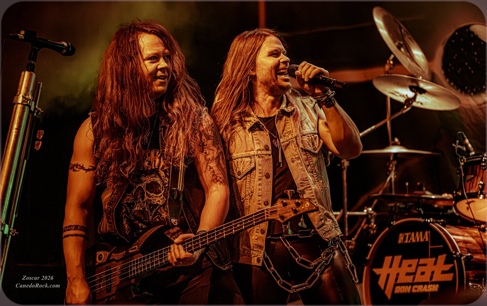 Cierran filas el pack de engranajes de potencia constante: Lars "Don Crash" Jarkell, a la batería, y Jimmy "Jay" Johansson, al bajo. Estos dos personajes son de dejarse ver y de hacerse notar. Y es que, en H.E.A.T., cada componente aporta lo suyo así que se puede decir bien alto que son un GRUPO DE MÚSICA. Quedan pocos, ojo.