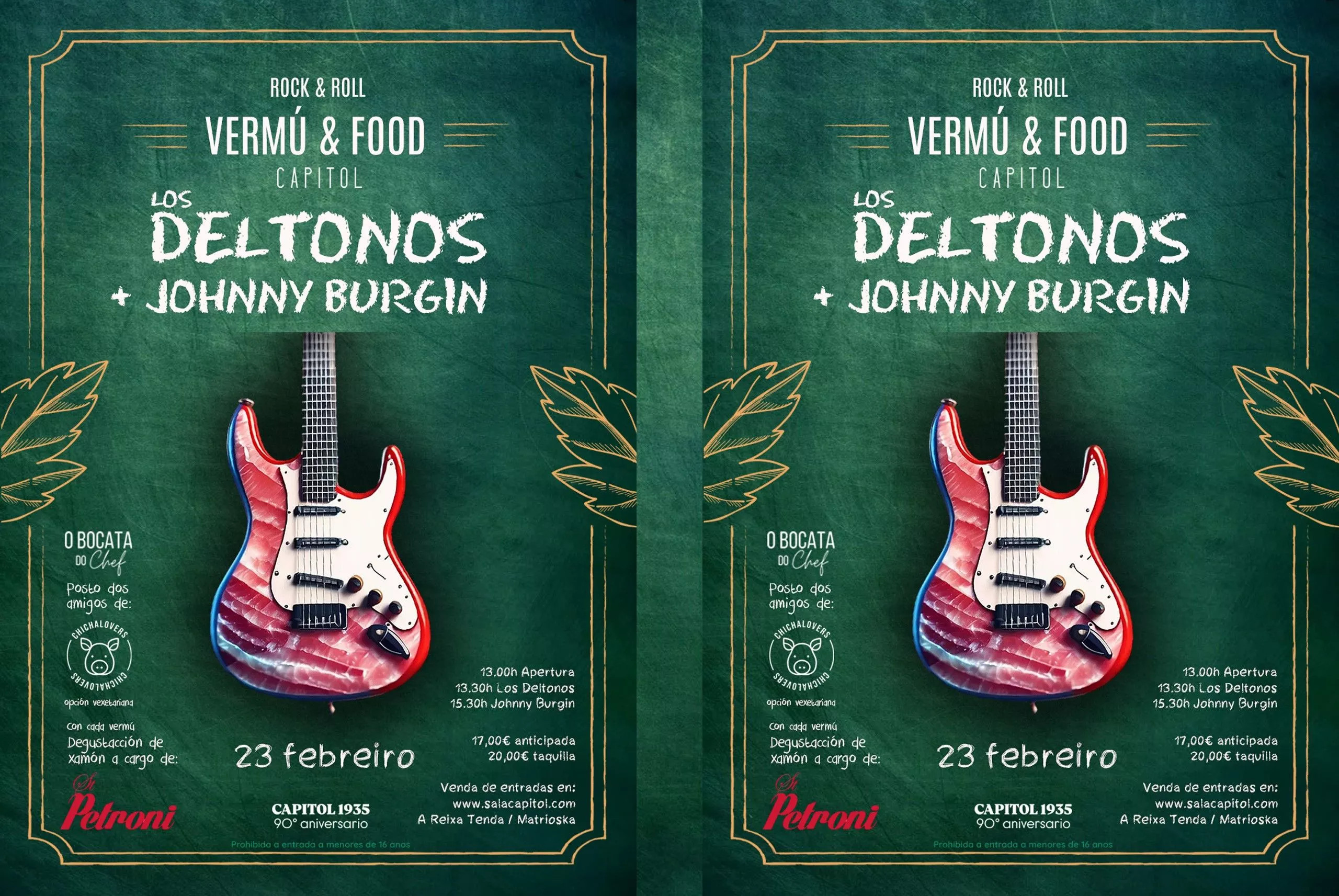 En esta ocasión, se presenta un doble concierto a la hora del vermú, con degustación de jamón y posibilidad de bocata Chichalovers. Será el domingo 23 de febrero cuando el rock&roll de los cántabros Los Deltonos y el blues, de raíz profunda, del americano Johnny Burgin, varias veces nominado a los Blues Music Awards, darán color al último día de la semana.