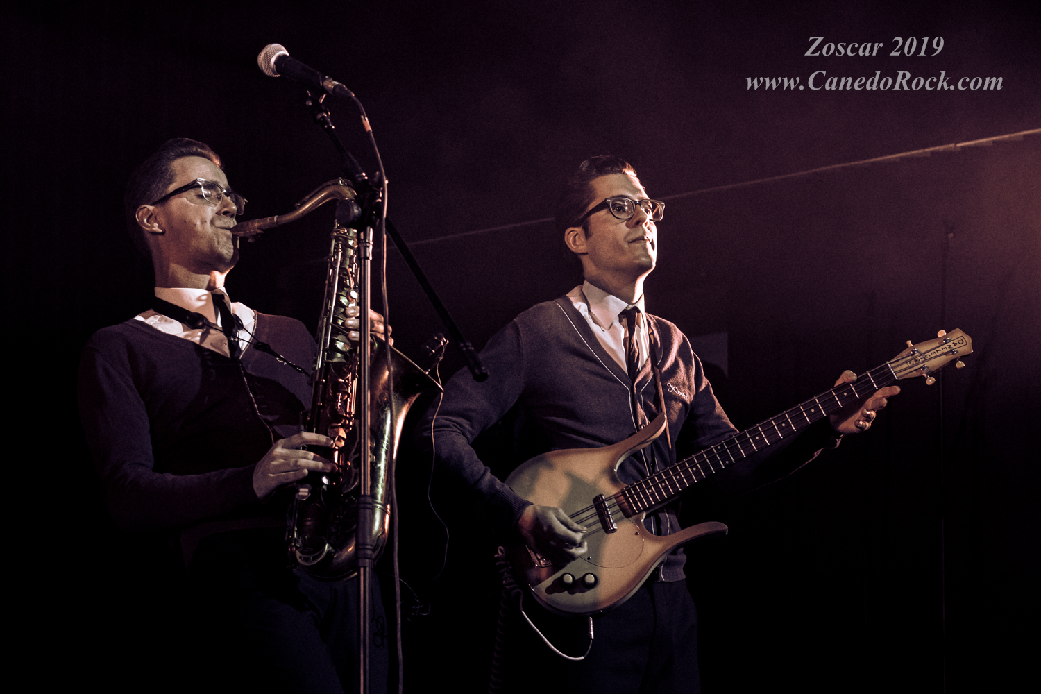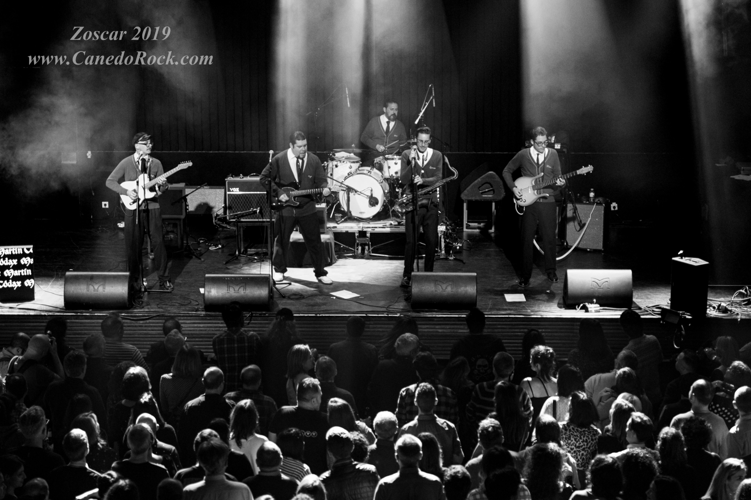 Con media entrada abrieron LOS TORONTOS. Una banda de Rhythm & Blues early 60’s con un puntazo Frat Rock que funciona a toda pastilla con una instrumentación que roza la perfección a la que someten, con sus intercaladas voces, a un delirio que nos hace viajar a la época más yé-yé del R&R. La formación se compone de Agustí Burriel a la voz y guitarra rítmica, Spencer Evoy a la voz y al saxo, El Lega a la guitarra eléctrica, Xabi Ruiz al bajo eléctrico y Berto Martínez a la batería. Músicos muy bregados en el mundillo del R&R, con muchos kilómetros de carretera que han militado en bandas como Los Locos del Oeste, The Kabooms, Velvet Candles o MFC Chicken.