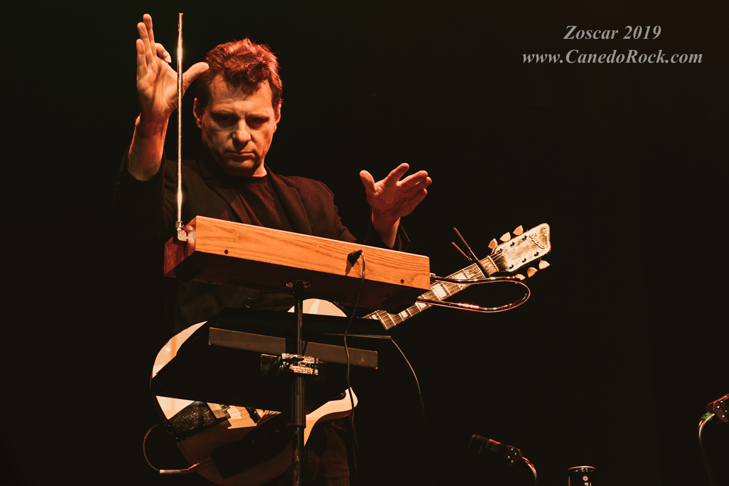 También se acompaña de una guitarra acústica tamaño reducido que le da el toque “vintage” y árido a la mezcla. En la guitarra se encuentra Enmanuel Mercier que sin duda es el hombre orquesta de la formación. Sus funciones van desde hacer sonar un Theremin dándole a los temas, en determinados pasajes, un ambiente espacial llevando el “blues” a una órbita extraterrestre. También se ocupa del mini sintetizador analógico creando bucles que te sumergen en las historias de las mil y una noches. Pero son sus trémolos y wah-wah’s los que perfilan el sonido de su guitarra Danelectro creando una atmósfera propicia para alcanzar un éxtasis de “blues”.