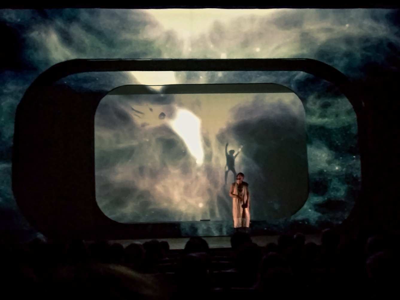 Así empezamos, como os decía, alejados de todo contacto con la realidad, mientras esa niña nos recuerda el prisma desde el que contemplar el panorama. No, repito, no hablamos de un concierto al uso, es más, no es un concierto: es una obra de teatro con una fuerte carga audiovisual.