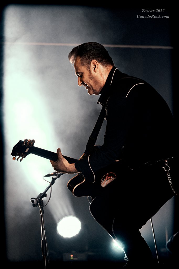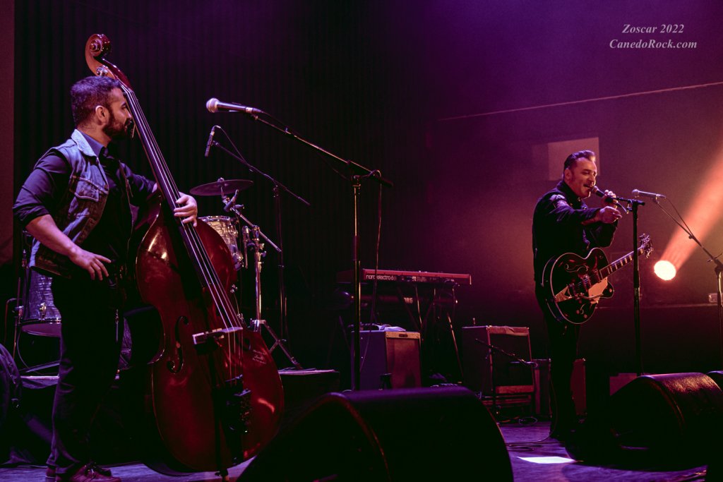 Martín Esturao es el comandante de esta formación que causa sensación allá por donde enciende su ampli; armado con una Gretsch, unas patillas y un tupé siempre en su sitio, el cantante y guitarrista es un verdadero espectáculo sobre las tablas; una sonrisa gamberra que busca siempre el favor del público, remover los cimientos rítmicos de un respetable que rápidamente empatiza, se contagia y muda sus neuronas a un espacio sonoro en el que fluyen desinhibidas sus emociones. Es la voz clásica que requiere el género, la rítmica precisa que te aprieta para que no te salgas de la carretera y la guitarra solista, de gran cilindrada, que se pasea por el mástil, a gran velocidad y con soltura divina, cada vez que una canción brama un claro “esto es de locura”: la santísima trinidad de lo musical. Esto tiene mérito, es reseñable, y franca y sanamente envidiable.
