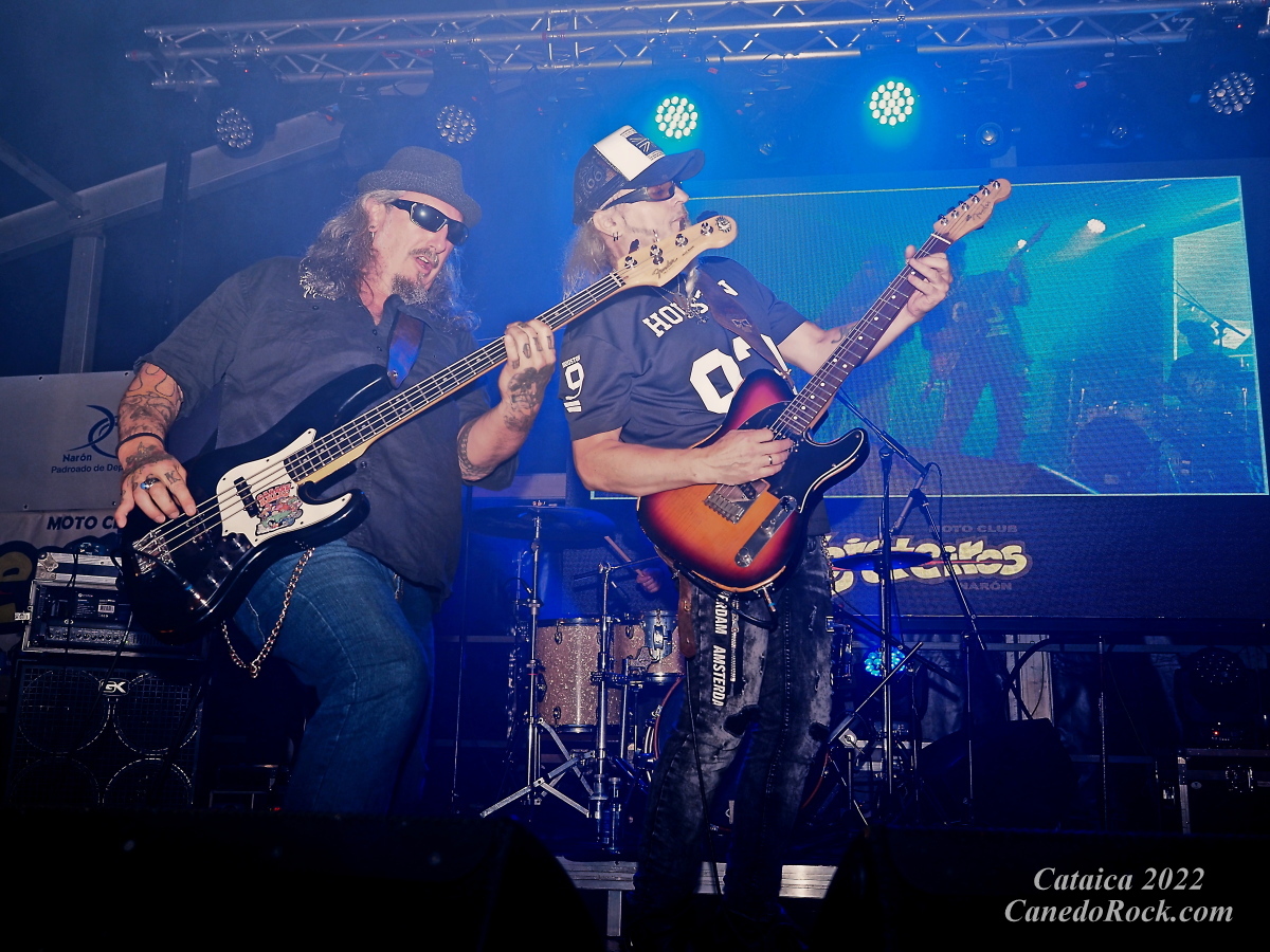 Abrieron fuego Cuero & Laca con una descarga artillera preparatoria para calentar la efervescencia de los asistentes. Rock and roll en la forma más actual de su concepción más clásica. Al habitual trío de Octavio García al bajo, Tony Torres a la guitarra y Fredy Rocker a la acústica y voz (la forma de vivir el rock de este hombre se merece una reflexión aparte) se unía la batería de Maikel Rodeiro, y atentos porque es posible que sea sino la última, al menos de las últimas ocasiones que lo veamos empuñar las baquetas en directo, ya que como es sabido se ha visto obligado a abandonar los timbales por problemas físicos, aunque seguiremos disfrutando de él como frontman en otros proyectos. La razón de su presencia en esta sazón es que se trataba de una contratación realizada con anterioridad a su retirada. No me extenderé más con ellos, no porque no lo merezcan, sino porque no hace mucho ya he reseñado el brutal concierto que dieron en la Sala Room en Ferrol. Si bien ellos mantienen el nivel de su altísimo listón yo ya no sé qué más puedo decir que no haya mentado en dicho momento.