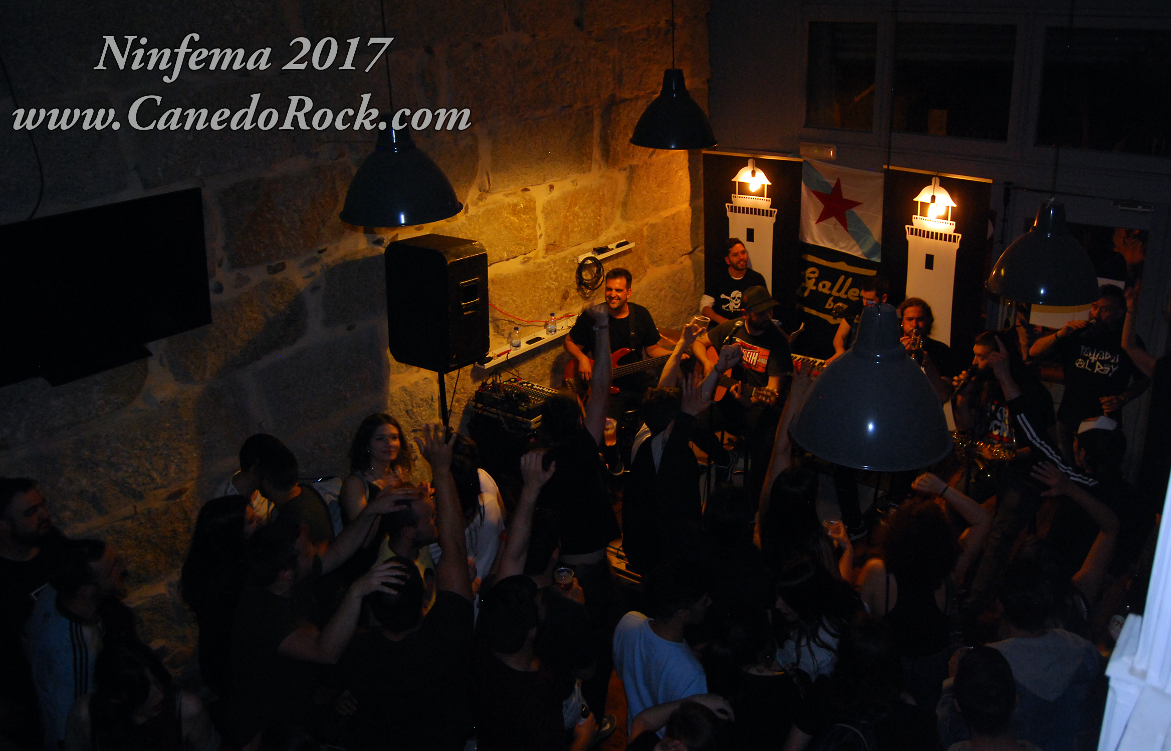 Un formato más “minimalista”, en un local pequeño pero acogedor como es el Gallery Bar, con un viento y una guitarra menos, con una batería mínima, guitarra acústica y todos los músicos sentados ante un fondo con unos faros y la bandera gallega con la estrella roja, el personal al igual que nosotros estaba expectante y con ganas de escuchar a la banda.