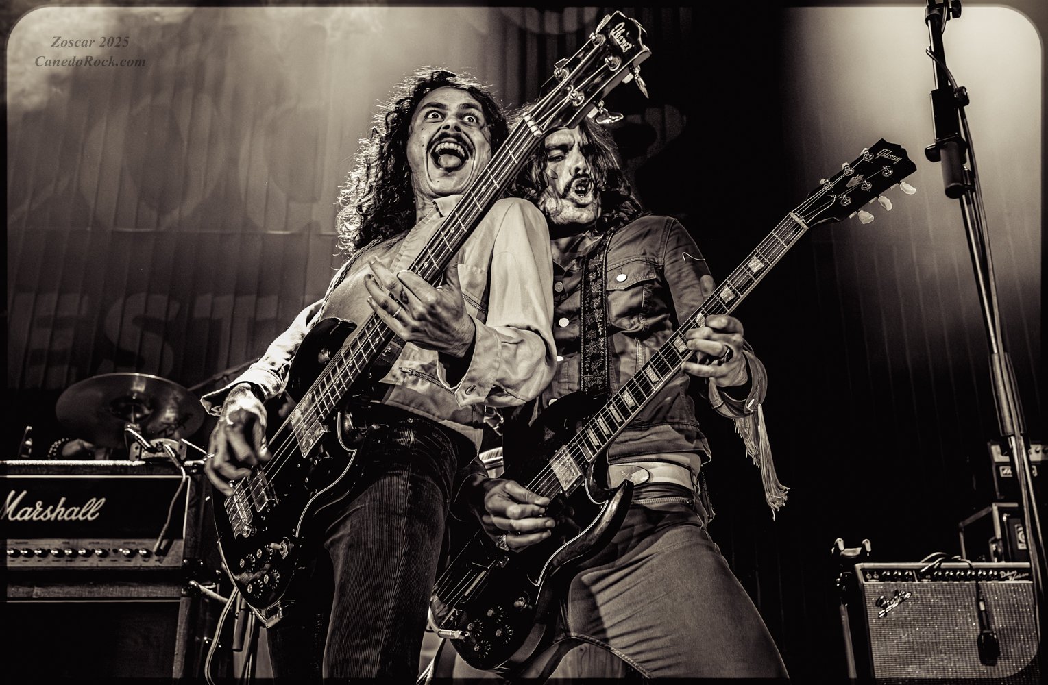 Su potencia no solo radica en sus composiciones hard setenteras sino que en sus directos dos baterías revientan la zona, con gran contundencia, a la vez que tres guitarras, con un sonido valvular, estalla en nuestras cabezas.