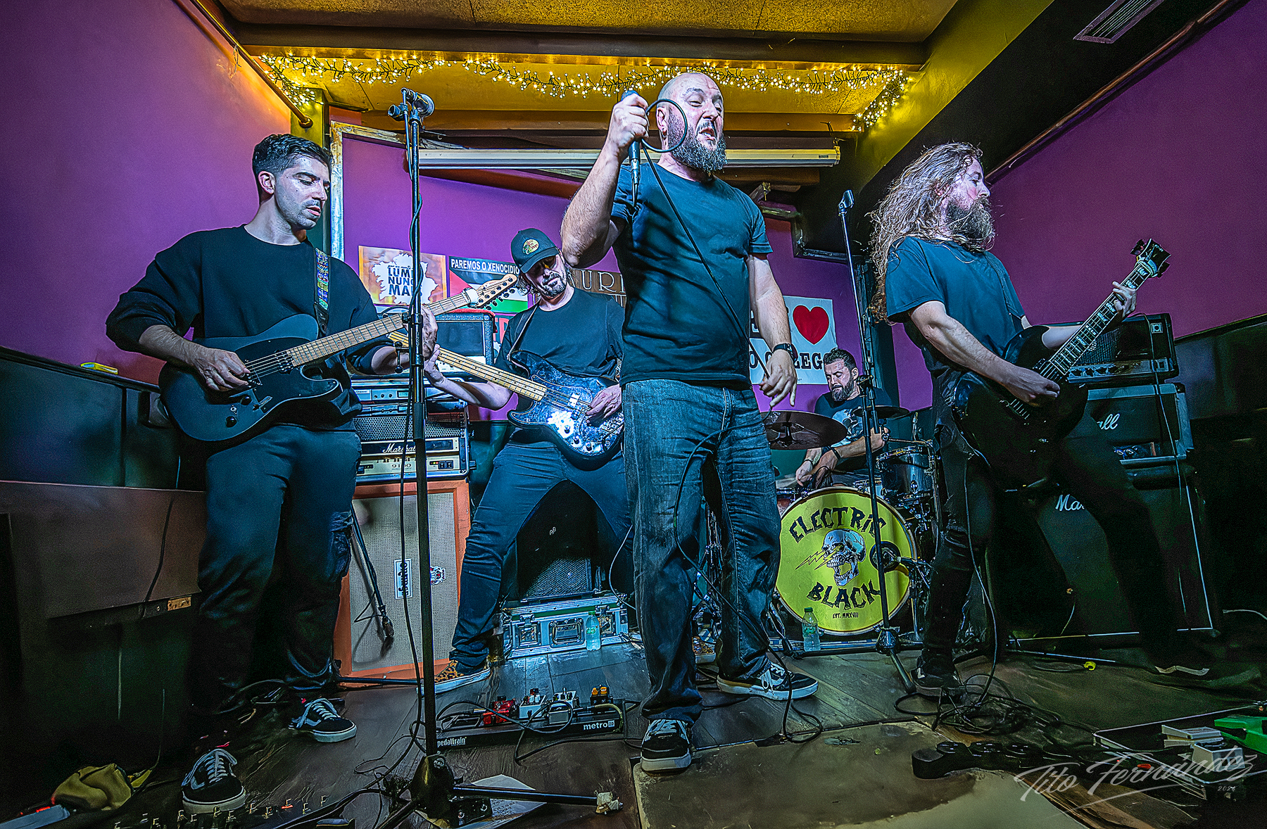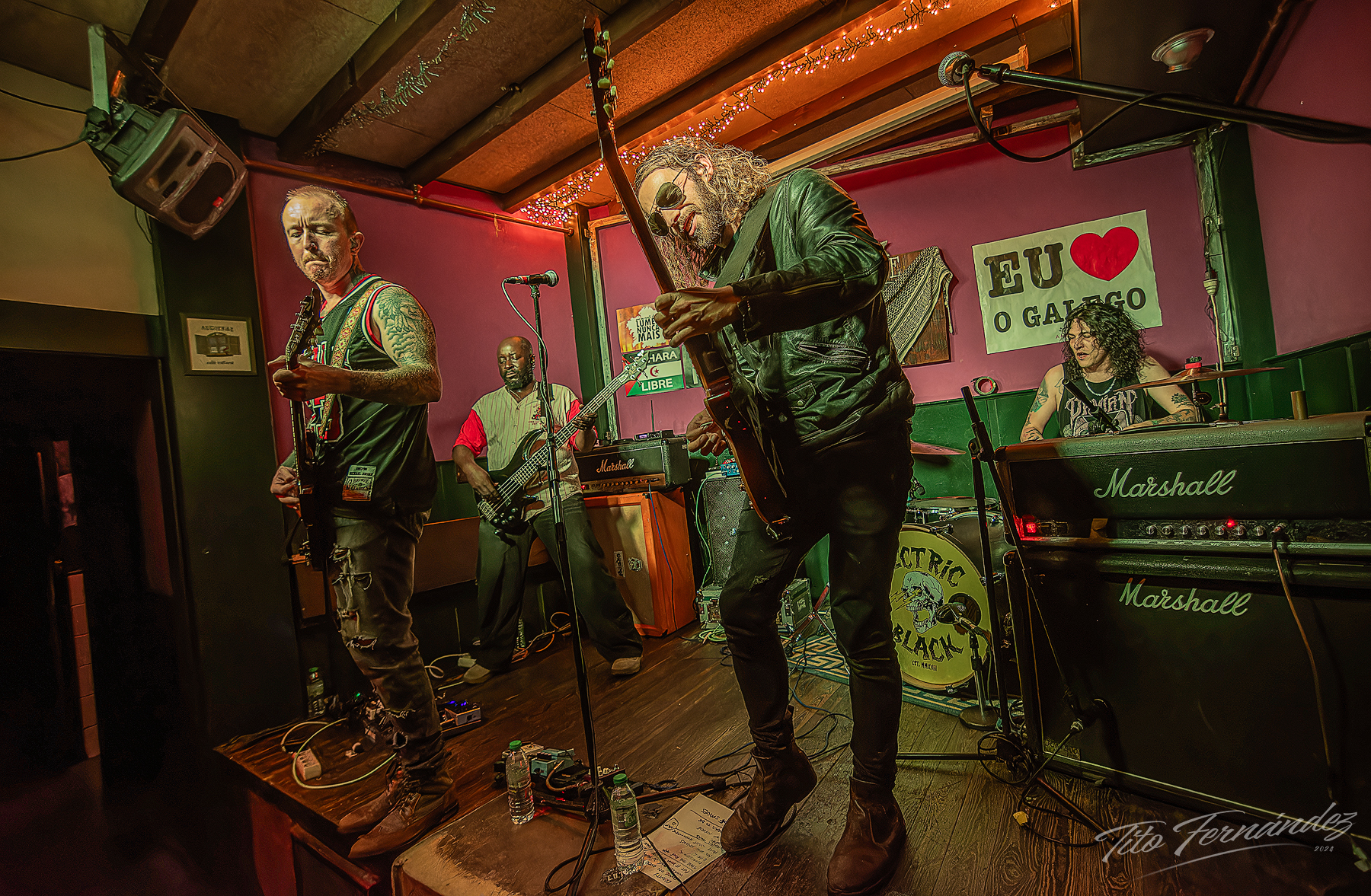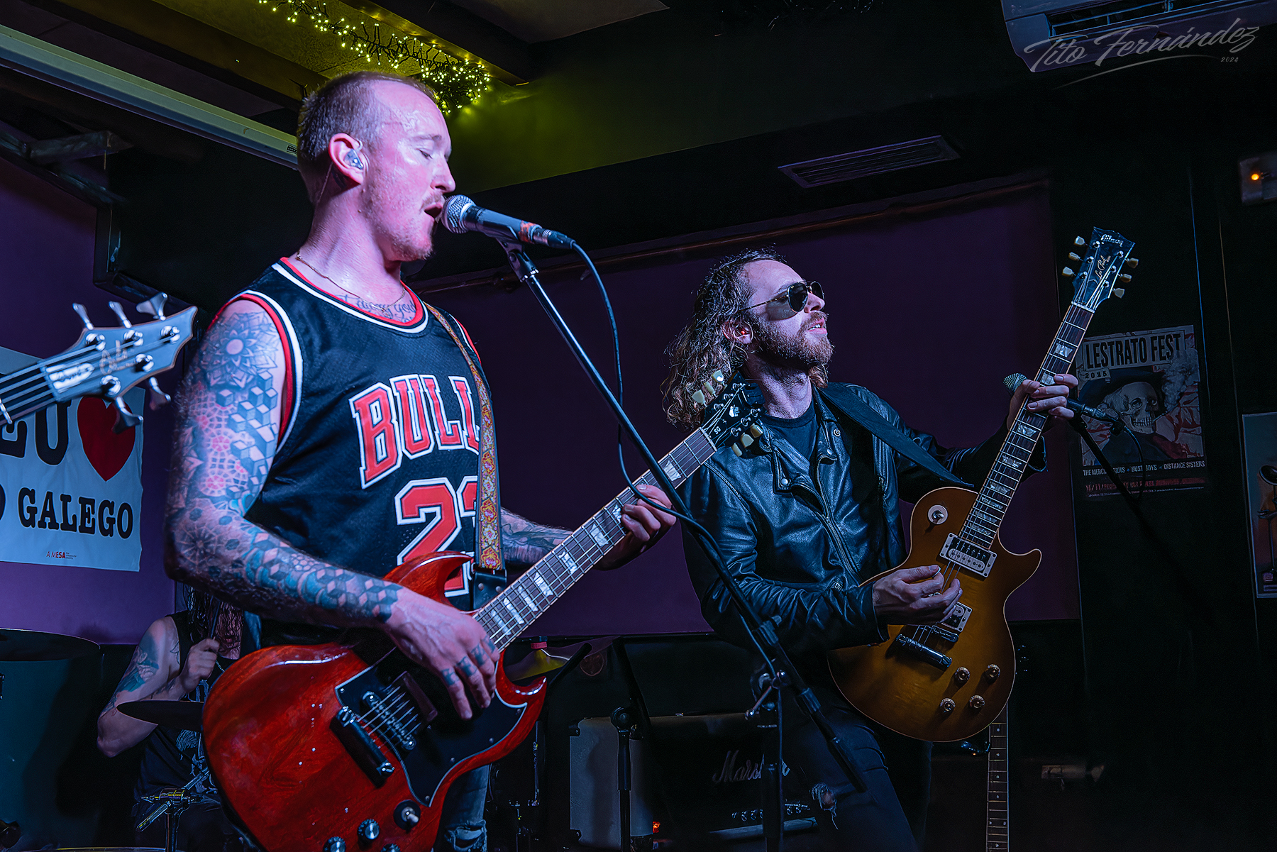 Los Electric Black se subieron a continuación al tablao para cerrar la jornada del viernes y demostrar por qué su nombre resuena con tanta fuerza en la escena del hard rock británico contemporáneo. El cuarteto de Hertfordshire, en sus estancias previas en la península, había dejado un buen sabor de boca y ahora volvía con la necesidad de presentar en sociedad su nuevo LP, “Late Night Lighting”. Hard rock de alto octanaje que sabe mezclar los clásicos sonidos de los años setenta con la energía del metal actual. Se mueven entre la crudeza y la sofisticación impulsados por guitarras potentes y una descomunal base rítmica. Impresionante la pegada de Matt Butler a la batería y Ryan Trotman al bajo. Jonny Bryant a la guitarra solista evidenciando una técnica impecable y un directo trabajado al detalle. Mientras al frente de la banda, con una voz cautivadora y una fluida y equilibrada guitarra rítmica, Alistair Shiach. Hora y media de sudor y diversión con buenos temas propios y versiones (Thin Lizzy, Motorhead…) Dejaron muy buen sabor de boca y ganas de más madera con un bolo que combinó potencia, elegancia y un muy buen rollo a todos los que allí nos concentramos.