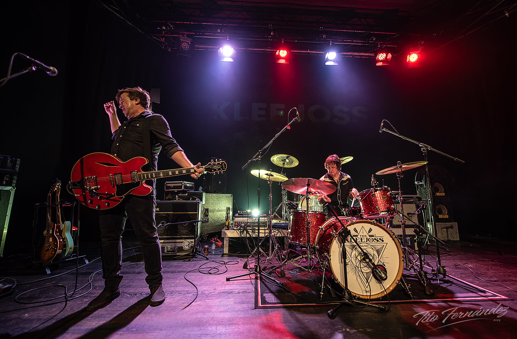 Había ganas, muchas, de volver a ver por estas tierras a los en un tiempo conocidos por The Kleejoss Band. Los antes cuarteto son ahora un power trío, tras el “paso a un lado” de la guitarra de Andres Mcmalo. Su marcha ha dejado un hueco que lejos de restarles fuerza, parece haberles empujado a tocar aún con más garra, como si cada nota tuviera que llenar ese espacio vacío dejado por el benjamín de la banda. Los ahora Kleejoss, desde el primer acorde, dejaron claro que lo suyo sigue siendo “rock y nada más que rock”, esa frase de la que han hecho bandera durante más de diez años de carretera. Una década celebrada recientemente con la publicación del directo, “Live X”, perfecto resumen de su trayectoria. Pocos grupos pueden presumir de una trayectoria tan sólida, tan sincera, tan cargada de verdad. Una de las bandas del top diez nacional, sin lugar a duda.