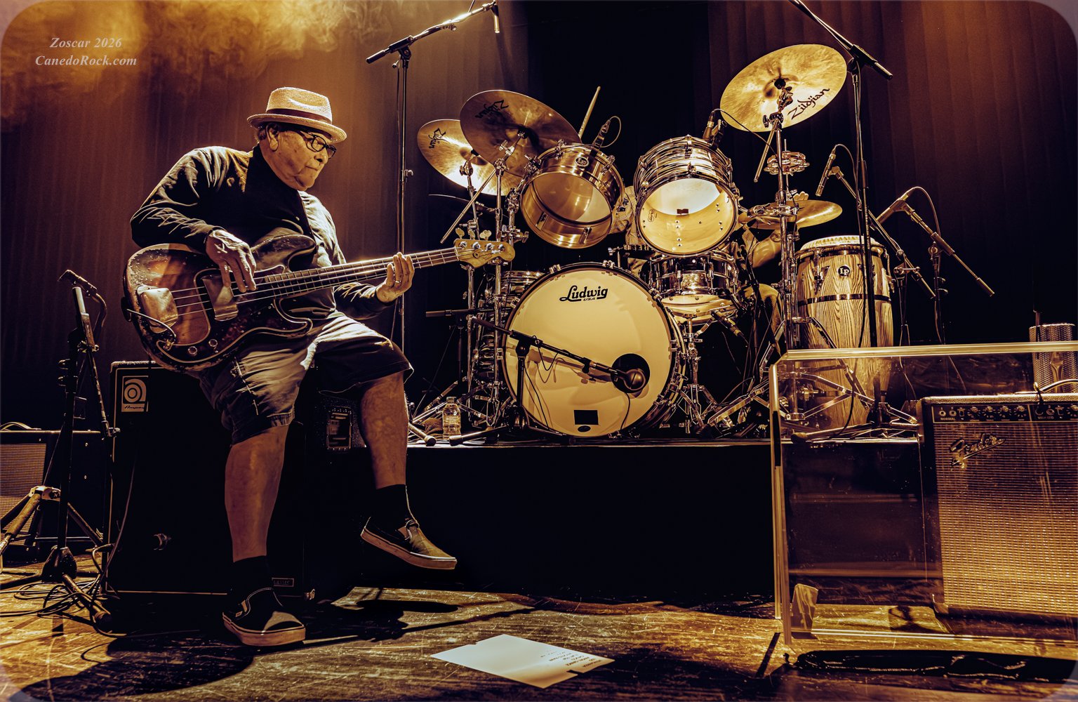 Inyectando insulina en los corazones de toda la formación tenemos en el bajo, al bueno de Conrad Lozano. Sentado en un taburete, la edad no perdona, mantiene la llama incandescente y, que no os engañe, bombea la energía justa y necesaria a lo largo de todo el show: un valiente.