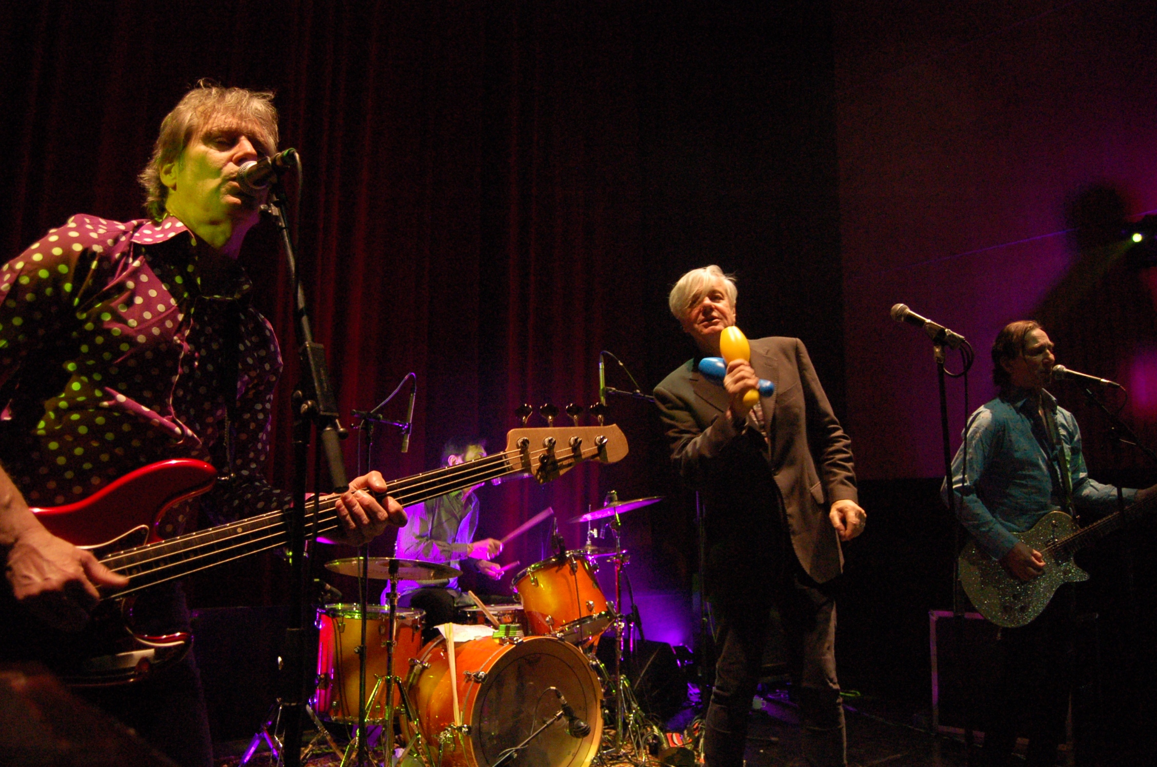 Y como no, uno de sus clásicos más ramonianos “I was a teenage zombie” nos situaban en el ecuador del concierto con un público totalmente entregado y que interactuaba en primera persona con los artistas ya que estos hacen todas esas cosas que no son música pero que hacen grande a un grupo de rock en directo. Posturas, carantoñas, saltos, paseos entre el público o subidas a la barra son algunos de los recursos que utilizan Fleshtones y que aportan al “show” dinamismo y mucho mucho cachondeo, eso si, sin dejar de lado su contundente muro de sonido. Una característica diferencial en el grupo es que todos sus integrantes se ocupan de algún modo de la faceta vocal. Así tanto Keith Streng a la guitarra y Ken Fox al bajo se alternan con Zaremba en el transcurso de los temas por lo que el abanico de color vocal se torna en algo rico y diverso. No podemos obviar los coros omnipresentes del batería Bill Milhizer que en todos los temas aporta su voz. Sin duda los coros son una de las ecuaciones principales de la fórmula final de la banda. Zaremba, a parte de ser el vocalista principal, se encarga de los teclados y genera fraseos, cortos pero efectivos, con su armónica que alterna con su voz.