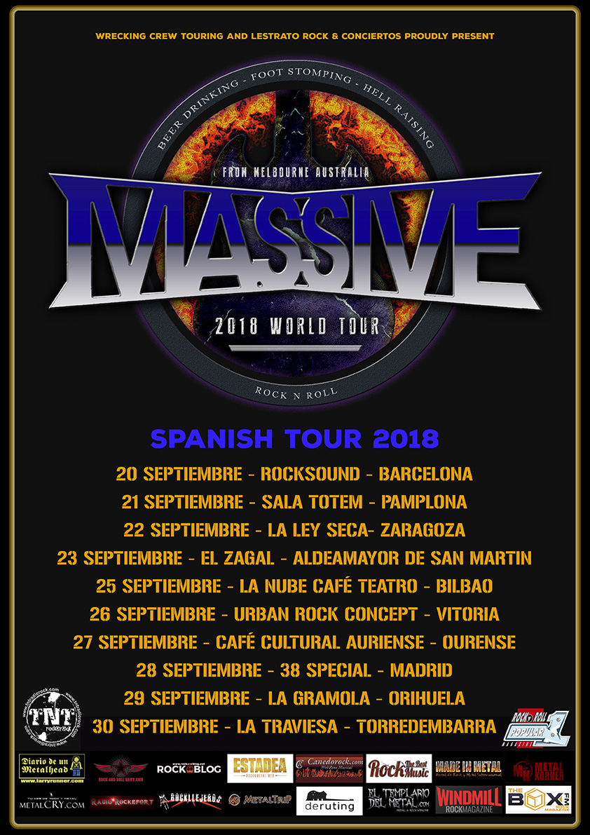 Massive llegarán a la península en septiembre para mostrarnos el verdadero significado del llamado Aussie Hard Rock. Una de las grandes banda del rock n roll australiano, Massive, ha estado conquistando los escenarios de todo el mundo durante los últimos 5 años.