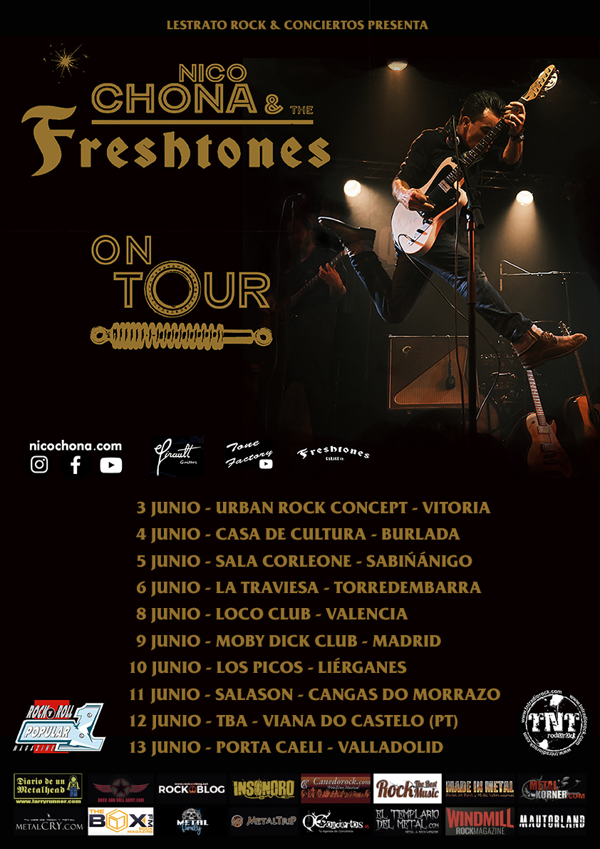 Los franceses Nico Chona & The Freshtones vienen a presentar su exitoso último álbum "Old Western Star". Diez fechas, diez conciertos, en el mes de junio que les harán a recorrer la Península Ibérica con el mejor Blues Rock como protagonista.