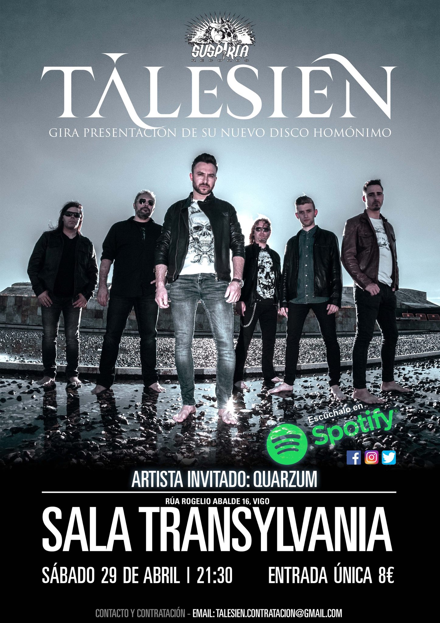 Los coruñeses Tálesien continúan con la gira de presentación de su de su nuevo trabajo. Este próximo sábado 29 de abril estarán en el Transylvania Pub de Vigo con Quarzum.