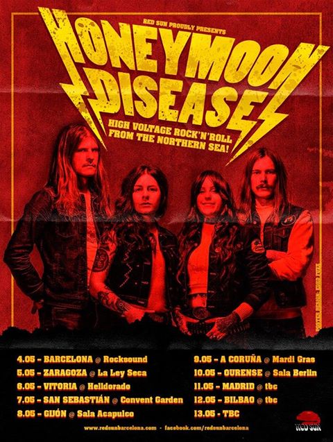 La banda sueca Honeymoon Disease estarán en A Coruña y Ourense en dos de su nueve fechas en nuestro país para presentarnos las canciones de su disco debut “The Transcendence” y "Electric Eel", su último single y adelanto de lo que será su próximo disco.
