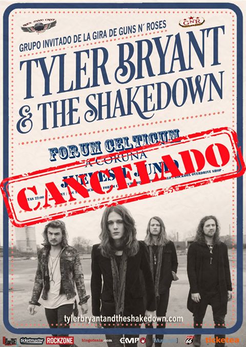 "Muy malas noticias para el concierto de Tyler Bryant & The Shakedown en el Forum Celticum el jueves 1 de Junio ..