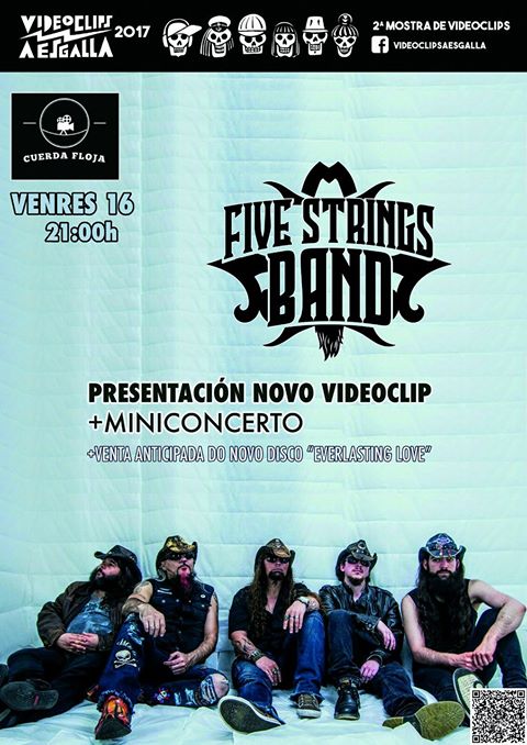 Este viernes 16 de junio a la 21.00 h, la banda ferrolana Five Strings Band presentarán en el Cuerda Floja (Rúa Espartero, 1) su nuevo videoclip del single de su trabajo "Everlasting Love", "Heal muy Soul". Venderán de manera anticipada su nuevo CD y realizarán un miniconcierto en el que tocarán temas de éste y de sus trabajos anteriores.