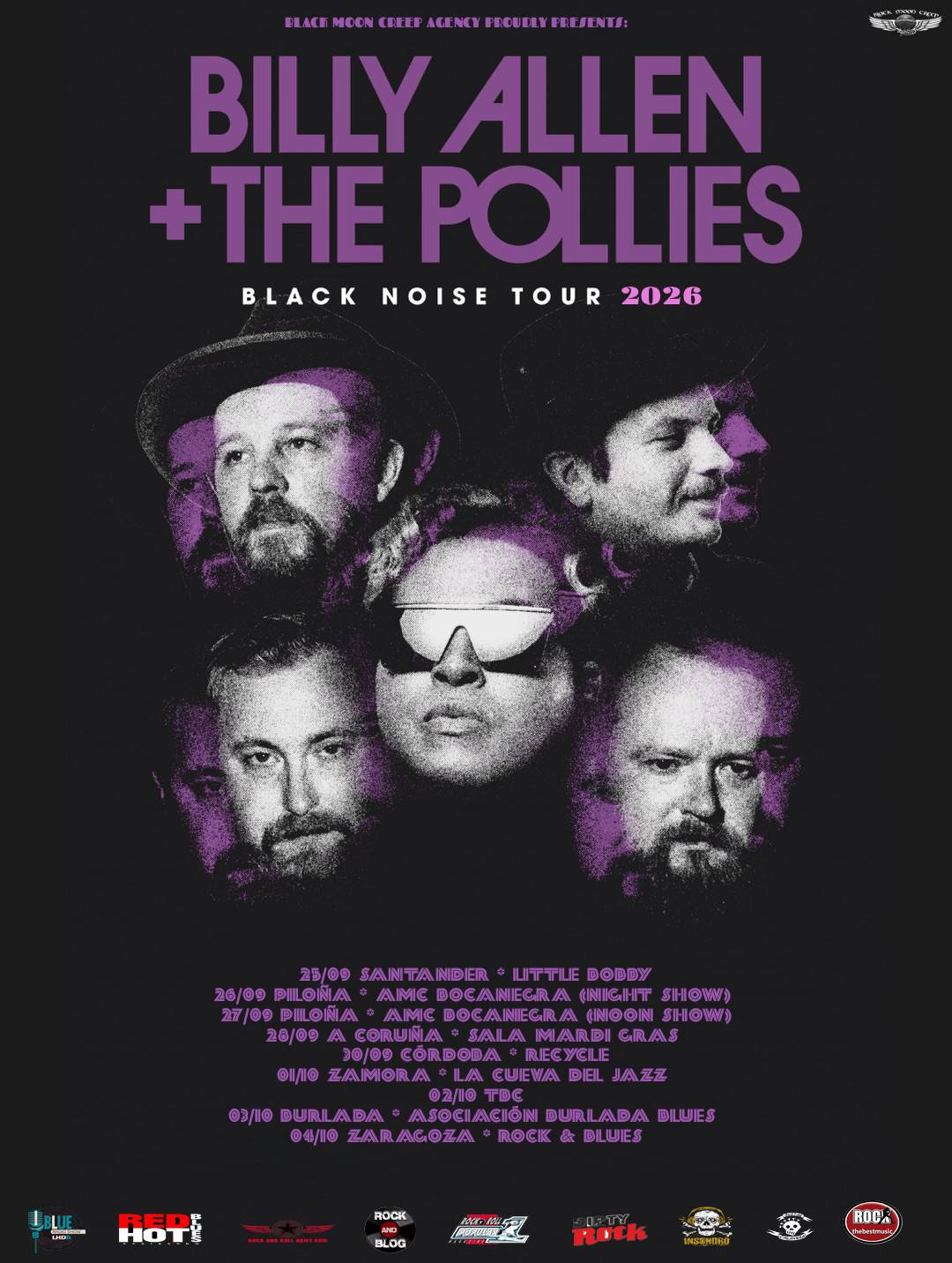 La banda sureña, de Alabama (USA), viene a presentar su nuevo disco "Black Noise" después de la unión de ambas fuerzas. Por un lado el talentoso Billy Allen con una larga carrera en solitario con su banda, y por otro la banda The Pollies también muy conocidos en la escena sureña americana.